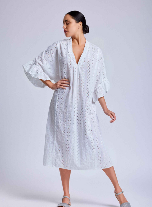 ABITO LUNGO BIANCO IN PIZZO PREGIATO - DAVID -